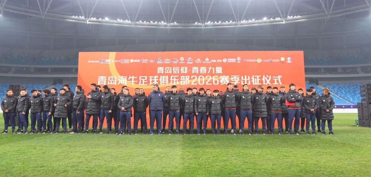 北京时间3月4日晚,青岛海牛足球俱乐部2026赛季出征仪式在青春足球场举行。